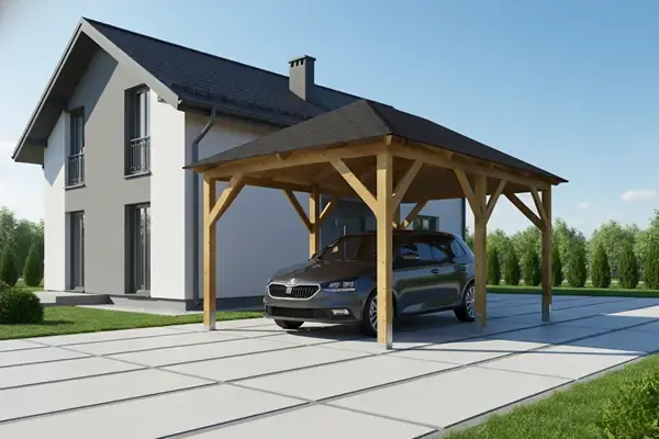 Neben Gartenpavillons und Pergolen umfasst unser Angebot auch Holzbauten. Wenn Sie zum Beispiel einen Garage aus Holz wollen, gehen Sie in den Bereich "Garage".