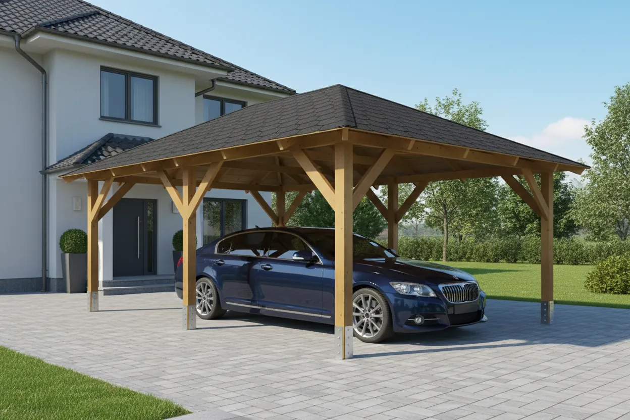 Unsere Monteure kommen noch am Tag der Anlieferung und montieren den Carport vor Ort.