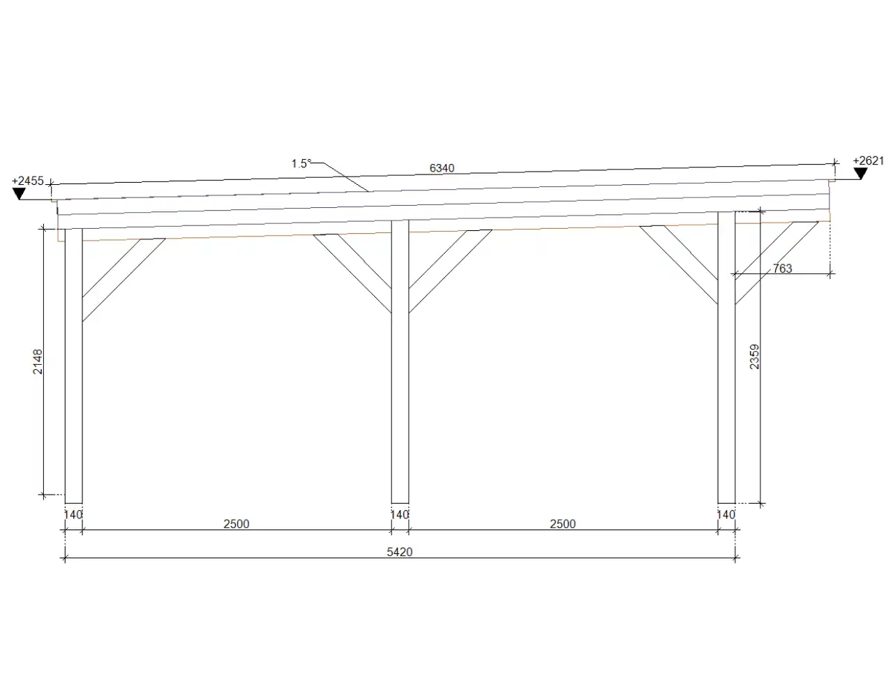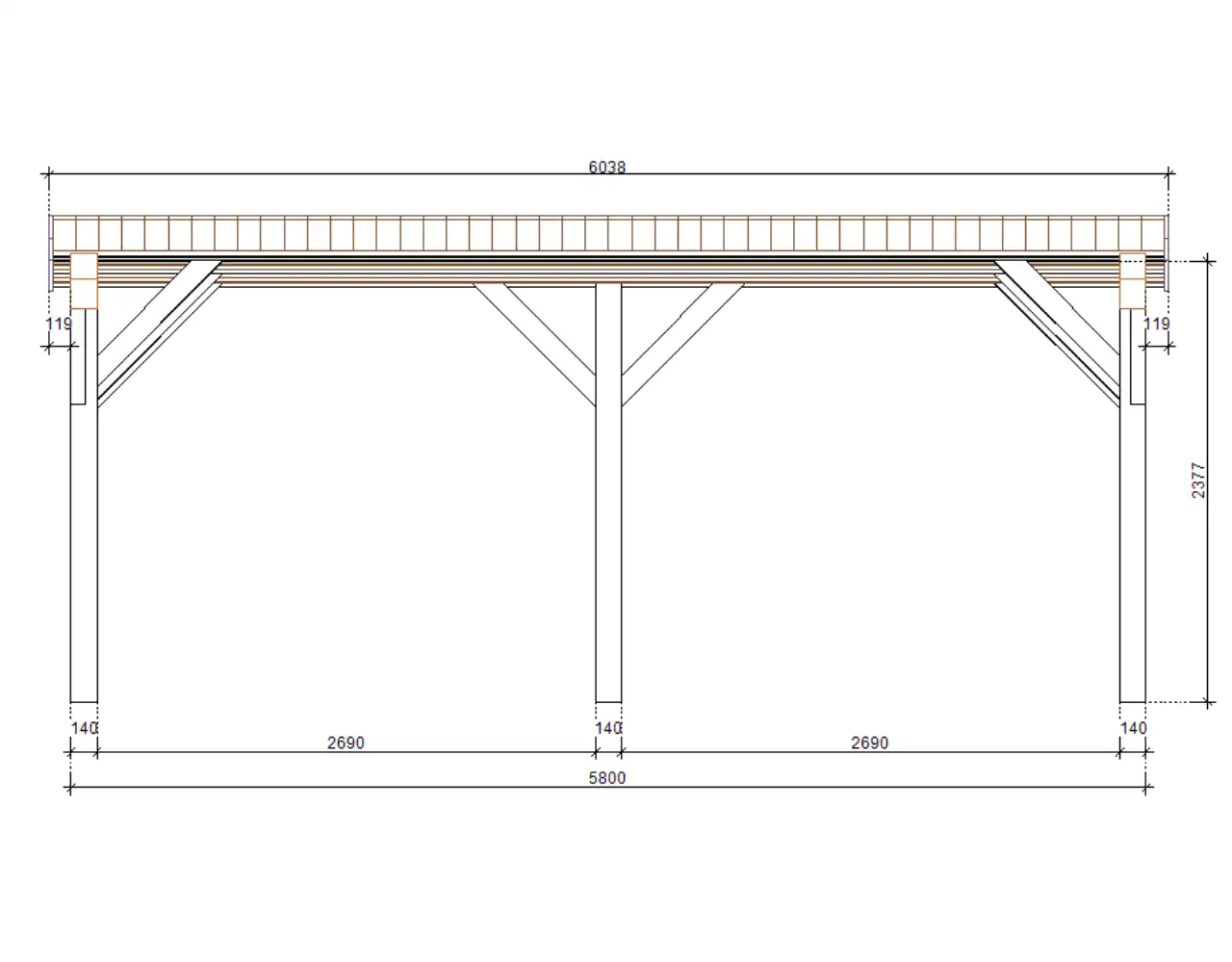 | Pfostenstärke | ● 14x14cm BSH |