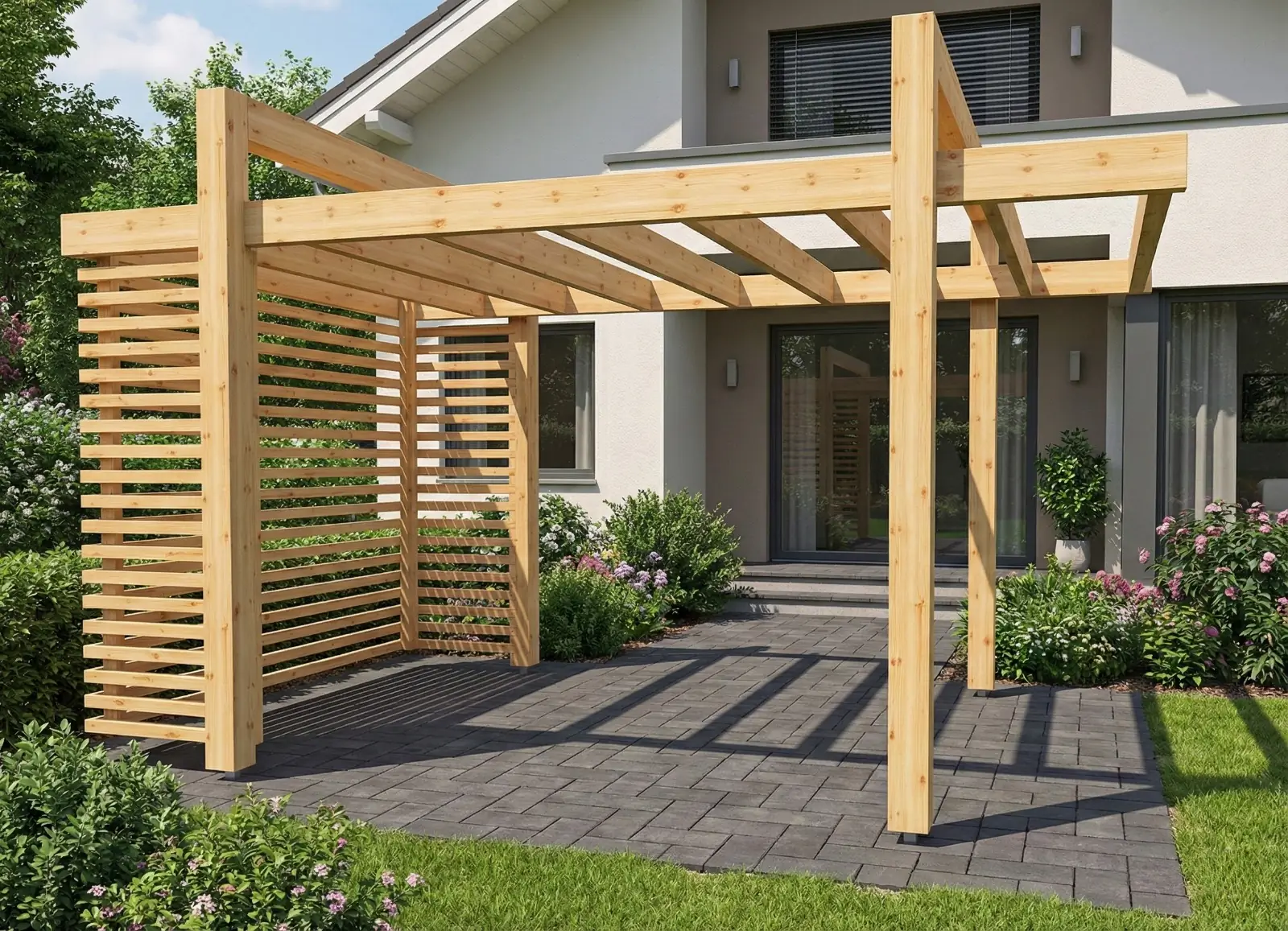 Holzpergola aus BSH – freistehende Gartenkonstruktion