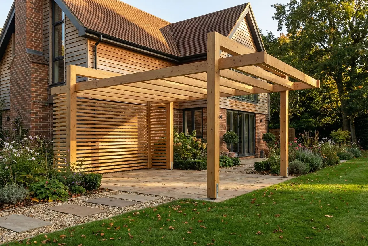 Holzpergola aus BSH – freistehende Gartenkonstruktion
