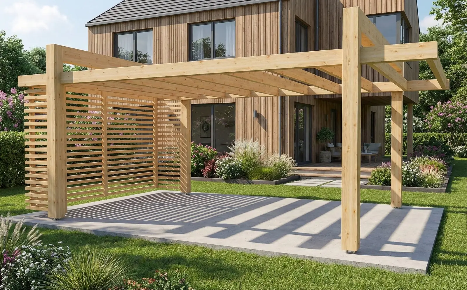 Holzpergola aus BSH – freistehende Gartenkonstruktion