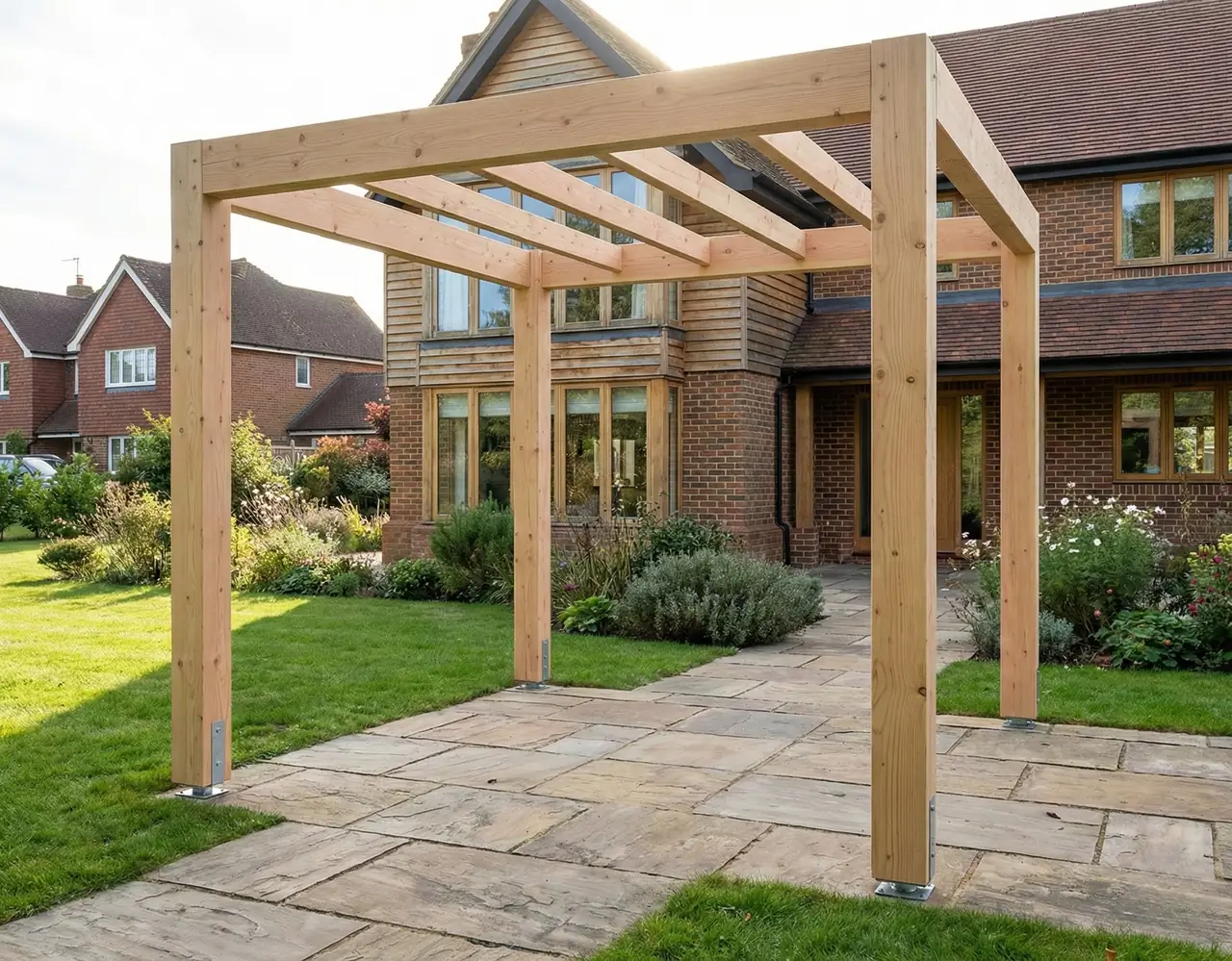 Holzpergola aus BSH – freistehende Gartenkonstruktion