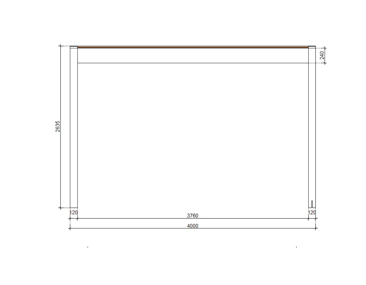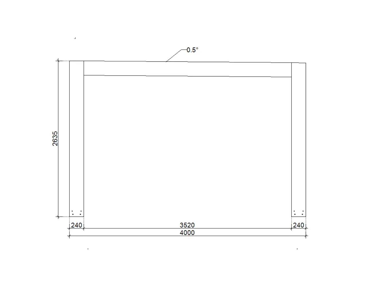 | Maße & Konstruktion | ● Pfette (Mauerlatte) - 12x24 cm BSH ● Sparren - 8x16 cm BSH ● Durchgangshöhe: 240 cm ● Gesamthöhe: 265 cm ● Dachneigung: 0,5⁰ |