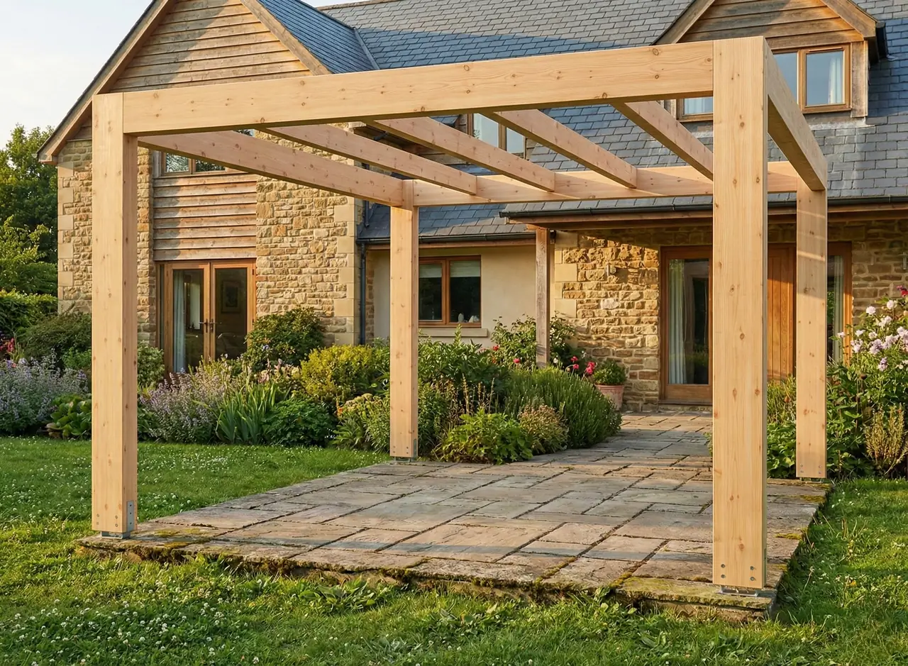 Holzpergola aus BSH – freistehende Gartenkonstruktion