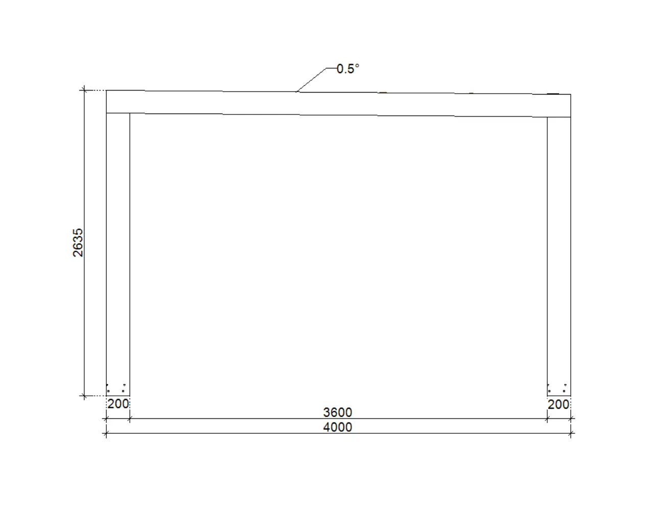 | Maße & Konstruktion | ● Sparren - 5,6x16 cm BSH ● Pfette (Mauerlatte) - 10x20 cm BSH ● Durchgangshöhe: 240 cm ● Gesamthöhe: 265 cm ● Dachneigung: 0,5⁰ |