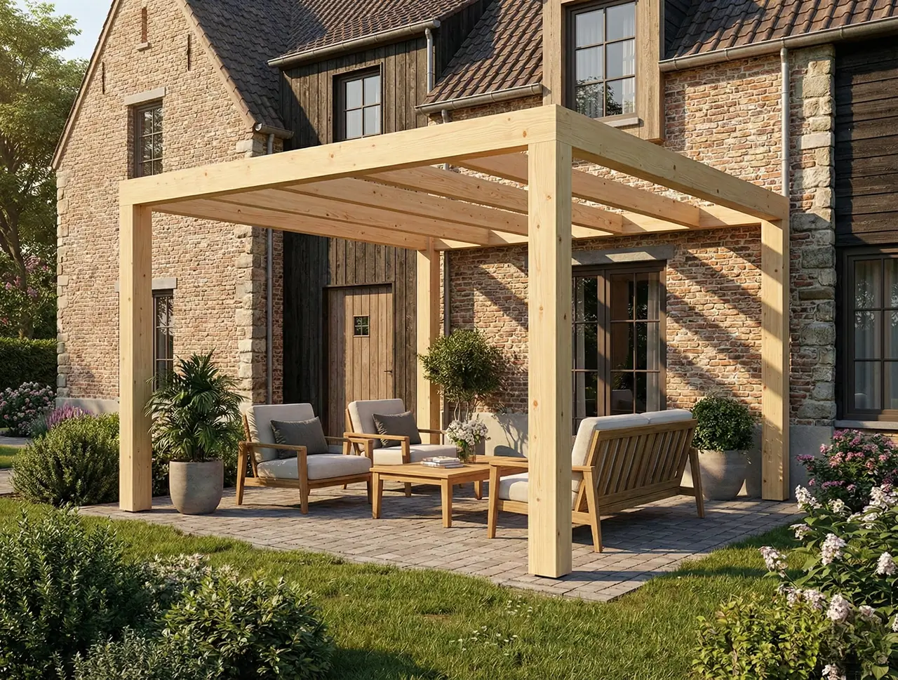 Holzpergola aus BSH – freistehende Gartenkonstruktion