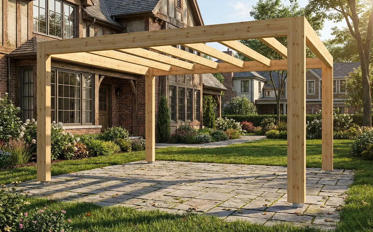 Holzpergola aus BSH – freistehende Gartenkonstruktion
