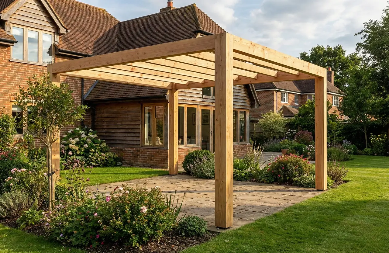Holzpergola aus BSH – freistehende Gartenkonstruktion