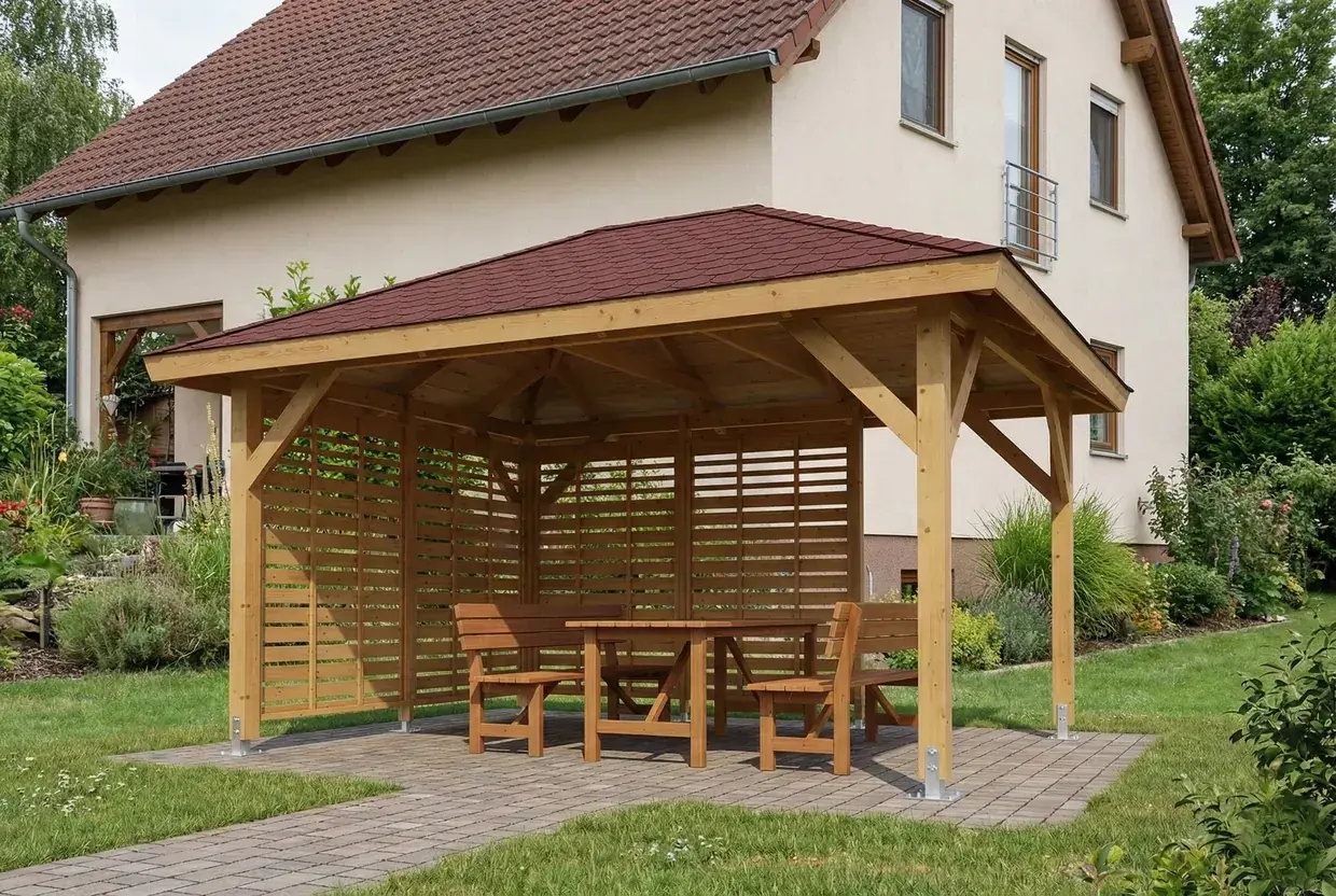 Holz pavillon Viktoria XXL ist ideal für die Freizeitgestaltung im Garten. Im Lieferumfang sind Befestigungsmittel und eine Aufbauanleitung enthalten, die den Aufbau erleichtern.